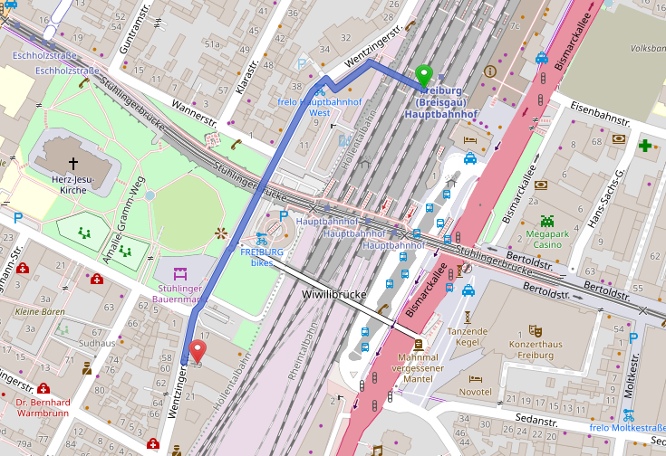 Ab dem EuroAirport Basel / Mulhouse / Freiburg mit dem AirportBus zum Freiburger Hauptbahnhof (Fahrzeit ca. 55 Minuten)